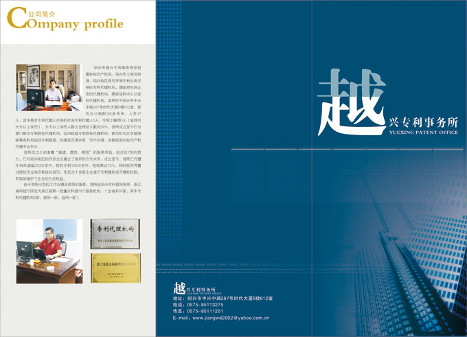 紹興市越興專利事務(wù)所是經(jīng)國家知識產(chǎn)權(quán)局、紹興市工商局批準(zhǔn),紹興地區(qū)具有開展專利業(yè)務(wù)資格的專利代理機(jī)構(gòu),國家商標(biāo)局認(rèn)定的代理機(jī)構(gòu),國家版權(quán)中心認(rèn)定的代理機(jī)構(gòu)。本所位于紹興市中興中路287號時(shí)代大廈6樓612室,現(xiàn)有辦公面積380多平米,人員17人,其中具有專利代理人資格的資深專利代理人5人,專利工程師5人(皆具有大專以上學(xué)歷),大專以上學(xué)歷人數(shù)占全所總?cè)藬?shù)的58%,行政人員3人,業(yè)務(wù)員4人。我所成立至今已與廈門新華專利商標(biāo)代理機(jī)構(gòu)、泉州文華專利商標(biāo)代理機(jī)構(gòu)、福州新華專利商標(biāo)代理機(jī)構(gòu)、溫州甌越專利商標(biāo)代理機(jī)構(gòu)、廣東冠華專利商標(biāo)代理機(jī)構(gòu)和廣州賦華專利商標(biāo)代理機(jī)構(gòu)及新華機(jī)構(gòu)北京聯(lián)絡(luò)部等組成專利聯(lián)盟,構(gòu)建起資源共享、協(xié)作共進(jìn)、連鎖經(jīng)營的知識產(chǎn)權(quán)代理專業(yè)平臺(tái)。